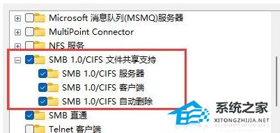 5. 最后,找到并勾选【SMB 1.0/CIFS 文件共享支持】,再点击【确定】保存即可。