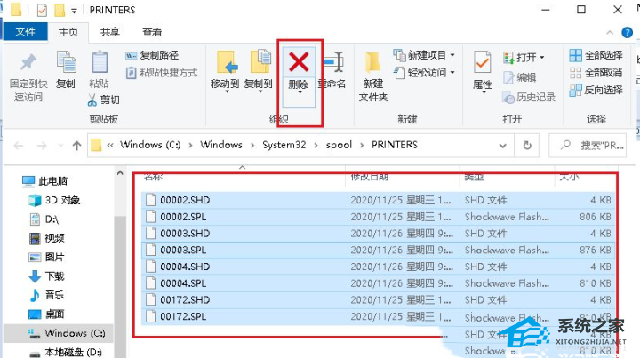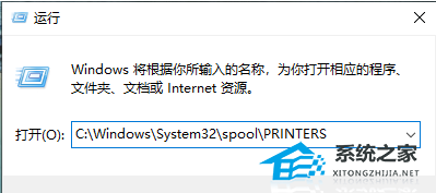 3. 这时候,再打开运行(Win+R),输入【C:\Windows\System32\spool\PRINTERS】,按【确定或回车】;