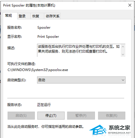 7. Print Spooler 的属性(本地计算机)窗口,将启动类型改为【自动】,再点击【确定】即可。
