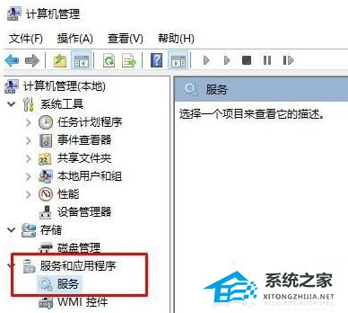 打开计算机管理界面,在左侧树状菜单中展开:服务和应用程序-服务。