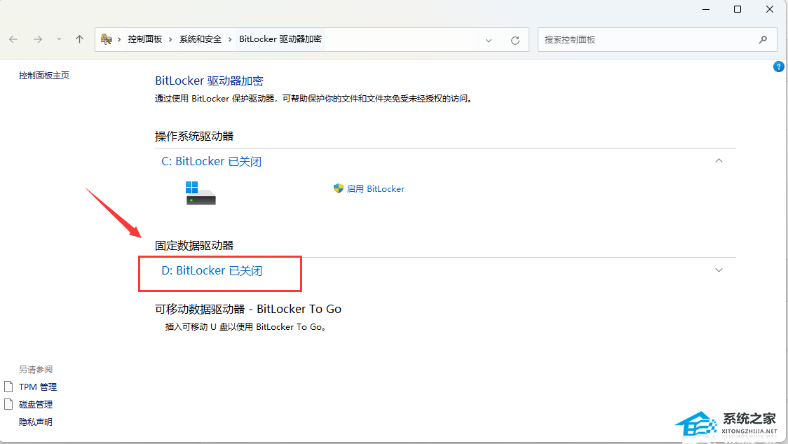 3. 此时会弹出BitLocker设置界面,我们在相应的磁盘上点击后在右侧点击关闭BitLocker按钮即可。