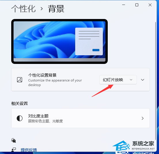3. 将背景的下拉菜单选项设置为幻灯片放映。
