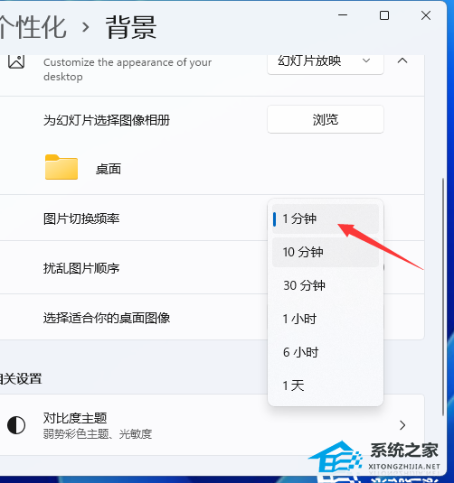 6. 在这里我们需要设置壁纸切换时间间隔就可以了。