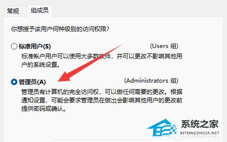 第八步:最后在“组成员”下勾选“管理员”并保持即可。
