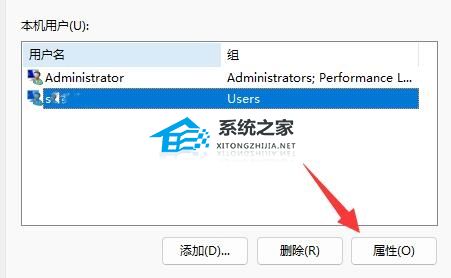 第七步:创建账户完成后,选中该用户,点击“属性”。