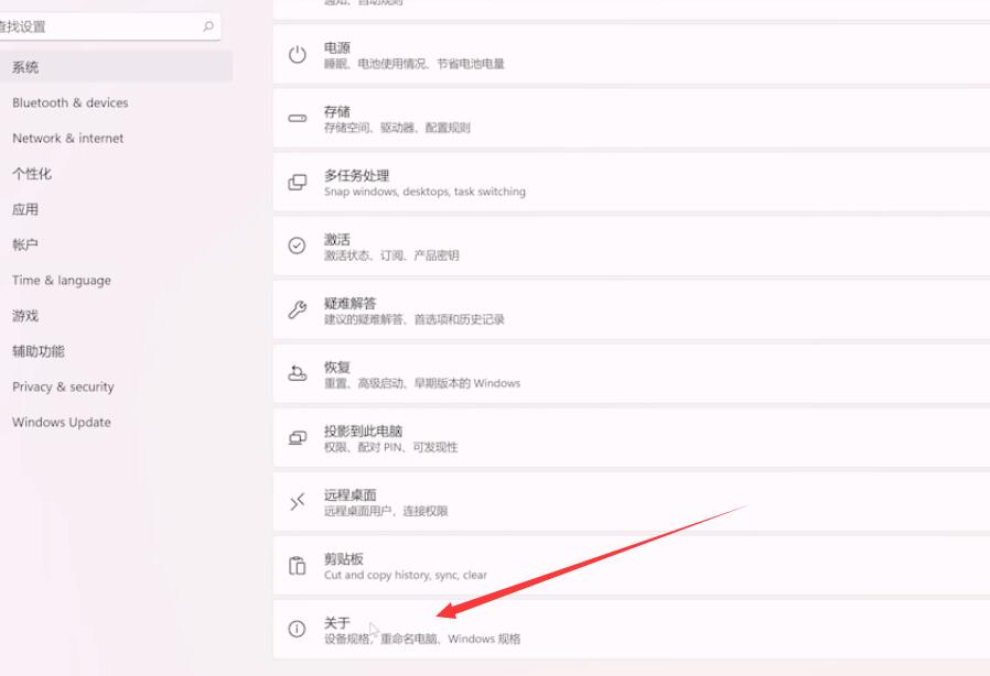 2. 点击系统,进入关于页面可以看到系统版本为Windows11专业版,系统类型为64位操作系统。