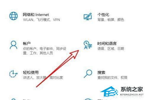2. 然后在打开的Windows设置窗口当中,我们点击时间和语言的图标。