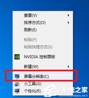 1. 在系统桌面的空白处右击鼠标选择屏幕分辨率点击进行下一步。
