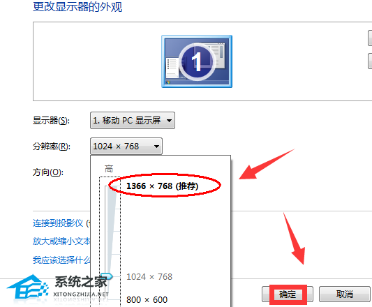 2. 在更改显示器外观界面对显示器的分辨率进行更改为推荐。这样就可以解决大部分的显示器无法全屏问题了。