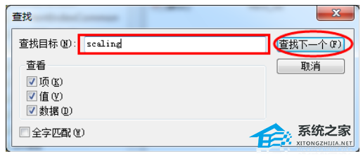 3. 在打开的查找界面输入scaling然后点击查找下一个。