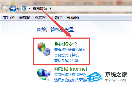 2. 继续在打开的控制面板界面找到系统和安全点击打开。