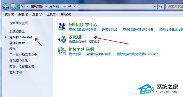点击“开始”按钮,选择“控制面板”,在控制面板中选择“家庭组”。