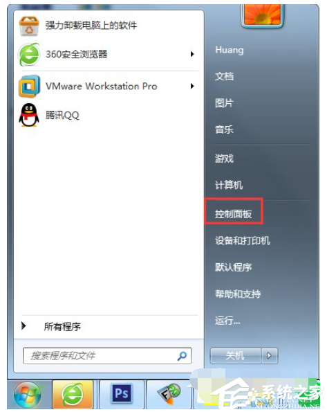 点击“开始”按钮,然后在搜索栏中输入“控制面板”,单击“控制面板”图标进入。