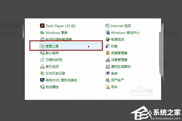 2. 打开所有的控制面板(把页面右上角的查看方式更改为“图标”),选择“管理工具”,双击打开。