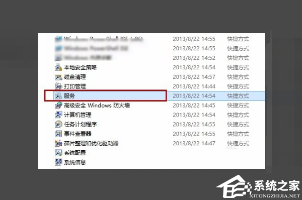 3. 在打开的管理工具文本框中选择“服务”快捷方式选项,同样双击打开。
