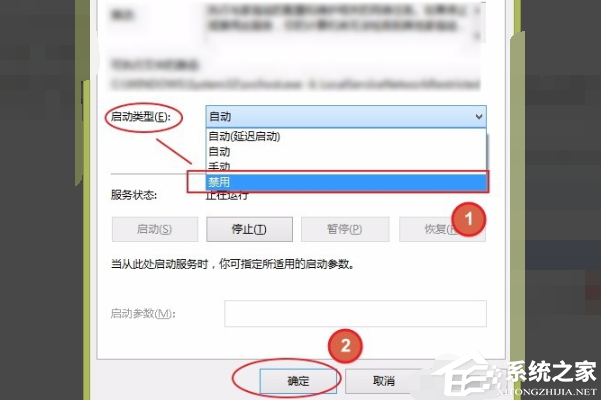 6. 将两个选项的启动类型都更改为“禁用”,然后单击“确定”按钮,关闭所有打开的页面,可以看到电脑桌面上的“家庭组”图标已经消失。