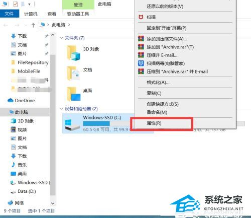 1. 在桌面上找到此电脑图标,点击进入,任意选择一个磁盘,鼠标点击右键,点击“属性”选项。