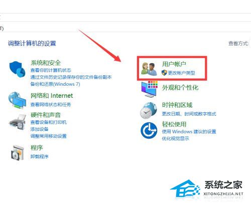 1. 在开始菜单中,搜索“控制面板”,进入页面后,点击“用户账户”。
