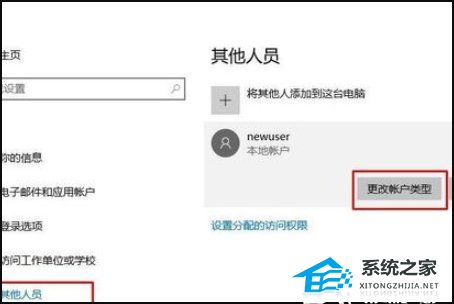 4. 然后选择其它人员,然后点击要要设置的账户,点击更改账户类型按钮。