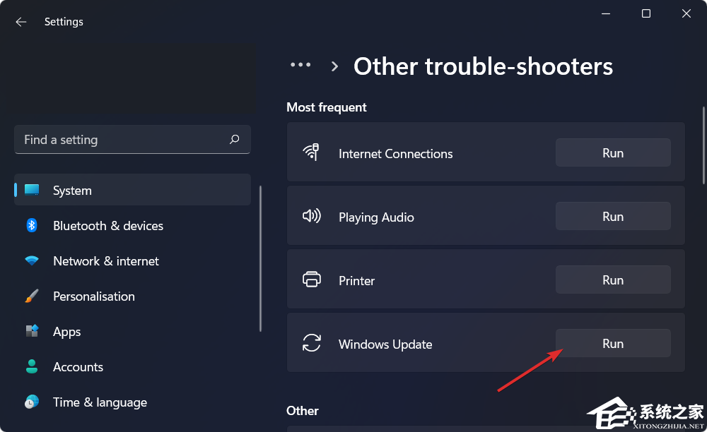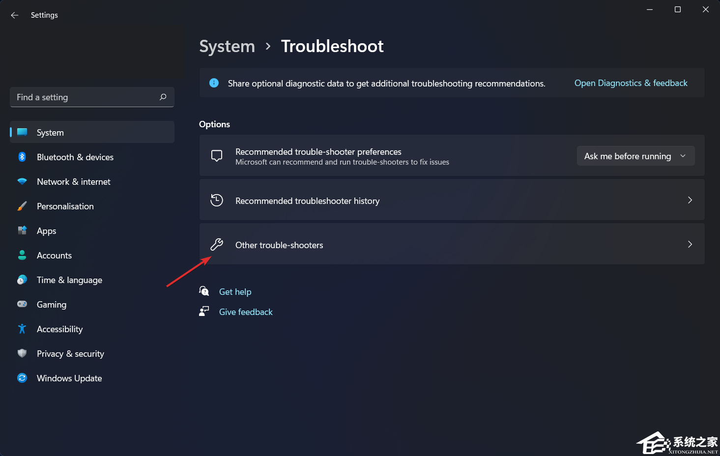 2. 进入疑难解答菜单后,单击其他疑难解答选项以查找更多疑难解答。