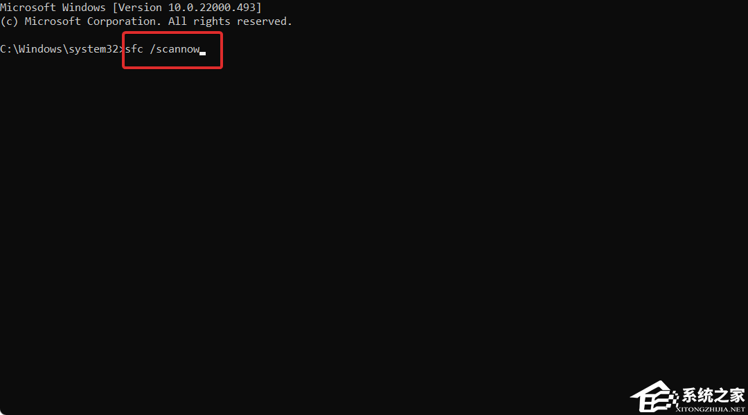 2. 现在键入或粘贴以下命令并按Enter:sfc /scannow