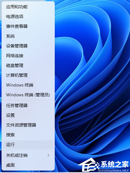 1. 按Win+X组合键,或右键点击任务栏底部的Windows开始图标,在打开的隐藏菜单项中,选择运行。