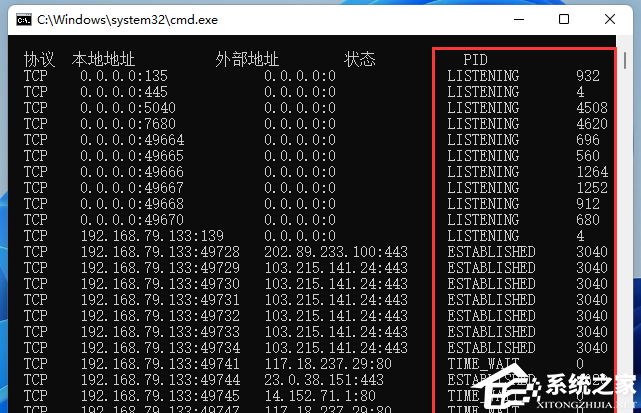 以上就是系统之家小编为你带来的关于“怎么看端口有没有被占用-Win11查看端口是否占用的方法”的全部内容了,希望可以解决你的问题,感谢您的阅读,更多精彩内容请关注系统之家官网。