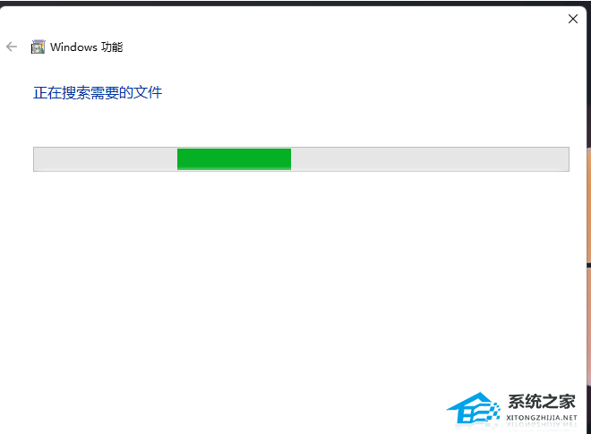 4. Windows功能窗口,提示正在搜索需要的文件,此步骤耐心等待即可。