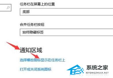 4. 进入后点击通知区域下的“选择哪些图标显示在任务栏上”。