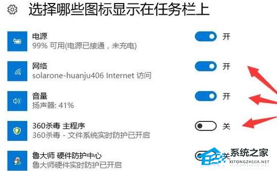 5. 最后将所有想要隐藏的图标给关闭就可以隐藏任务栏图标了。
