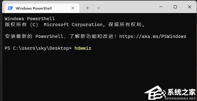 2. WindowsPowerShell窗口,输入并按回车,执行hdwwiz命令。