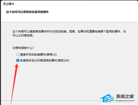 4. 这个向导可以帮助你安装其他硬件,这个向导可以搜索其他硬件并为你自动安装。或者,如果你知道要安装哪个型号的硬件,你可以从列表选项。
