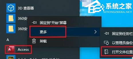 1. 首先点击左下角开始,然后右击目标项目,点击更多选择“打开文件位置”。