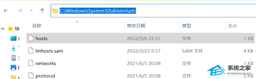 1. Win11 hosts文件目录:【C:\Windows\System32\drivers\etc】;