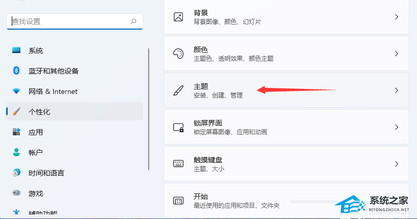 3. 进入个性化设置后,点击【主题(安装、创建、管理)】。