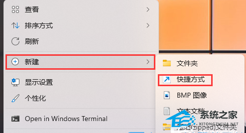 1. 桌面空白处,点击【右键】,在打开的菜单项中,选择【新建快捷方式】。