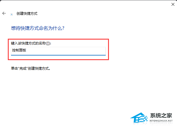 3. 键入该快捷方式的名称,输入【控制面板】,然后点击【完成】创建快捷方式。