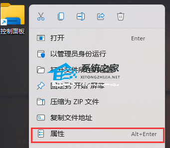 4. 再【右键】点击刚创建,名为控制面板的快捷方式,打开的菜单项中,选择【属性】。