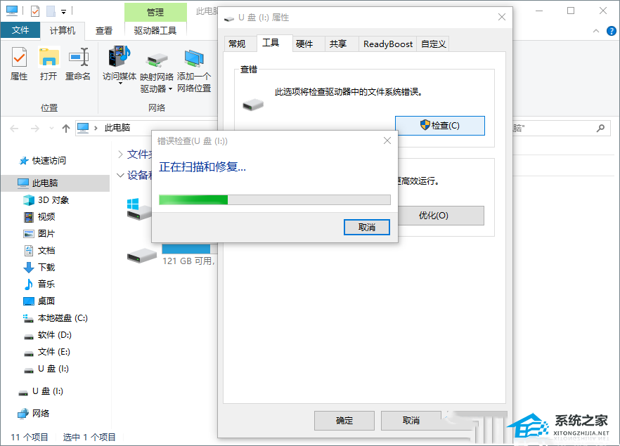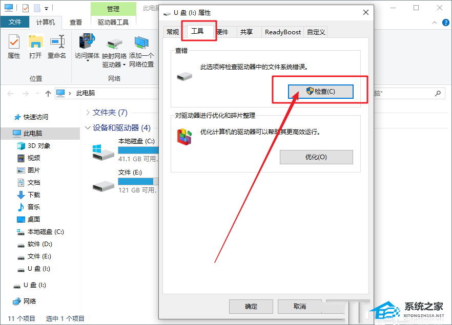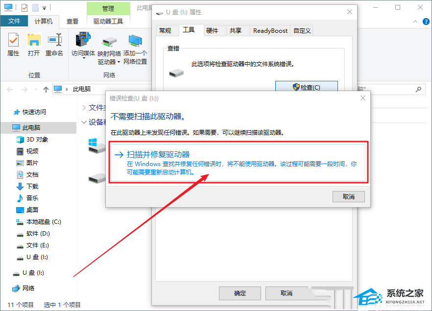 方法一:检查工具扫描并修复驱动器
