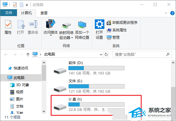 4. 移动硬盘修复成功,再次打开此电脑,可以看到移动硬盘已经恢复正常,可以使用了。