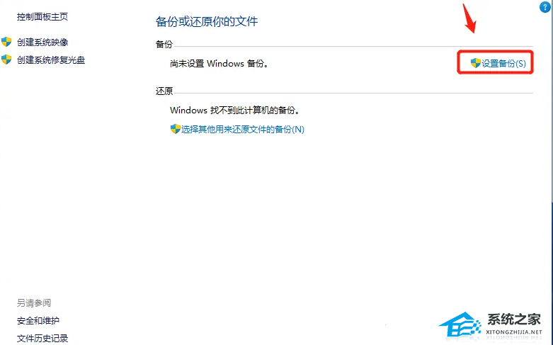 2. 备份和还原(Windows 7)窗口,点击【设置备份】;
