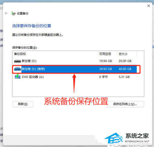 3. 选择要保存备份的位置,建议你将备份保存在外部硬盘驱动器上,当然,也可以直接选择保存备份的位置下,系统推荐的磁盘,再点击【下一页】;
