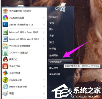 2. 按键盘上的【Win】键,或点击左下角的【开始图标】,在打开的【开始菜单】中,点击【设备和打印机】。