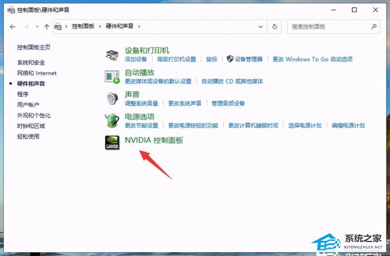 1. 由于小编电脑上用的是英伟达的显卡,所以下面就以切换使用英伟达独显为例。打开控制面板,点击“硬件和声音”。