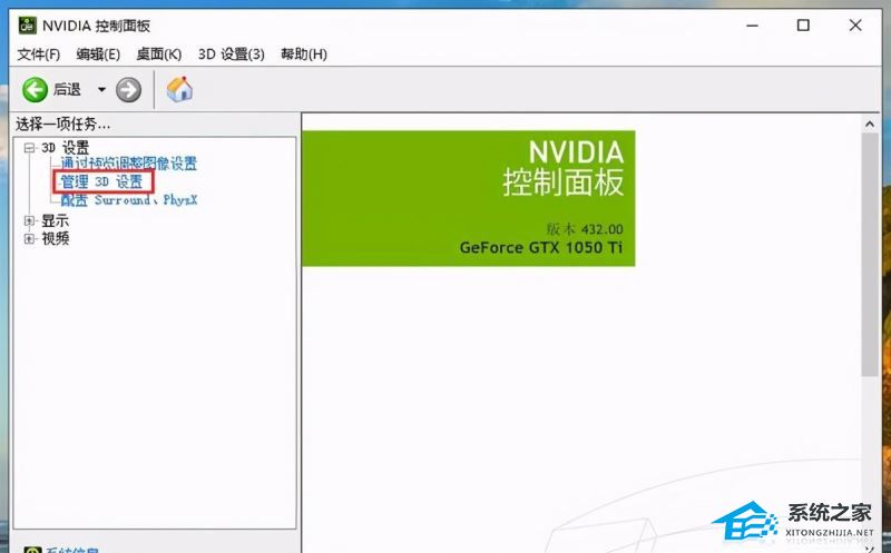 3. 在NVIDIA控制面板中选择“管理3D设置”。