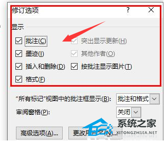 3、在打开的修订选项窗口中,添加批注显示即可。