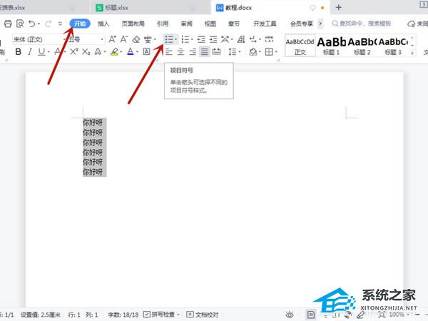2、在开始菜单点击编号选项后,选择需要的项目符号即可。