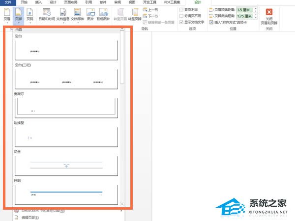 2、在设计界面点击页脚,选择需要设置的页脚类型即可。