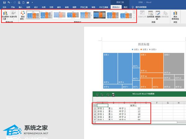 3、输入图表内容,还可在上方功能栏中添加元素,更改样式颜色和布局。