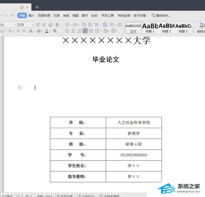 插入表格后,将原先的封面内容填入表格内。